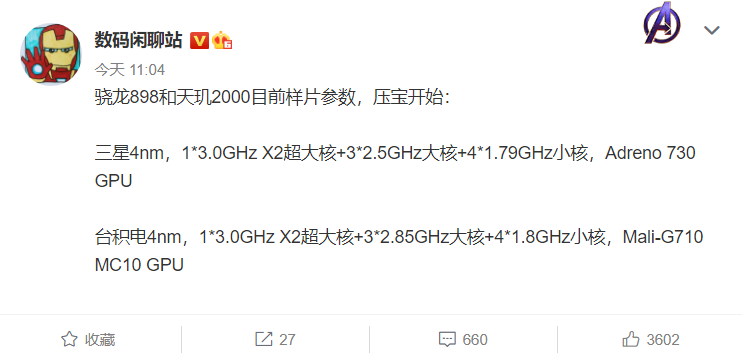 台积电 vs 三星工艺:天玑 2000 与高通骁龙 898 架构曝光,小米 12 系列有望首发搭载