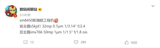 此外,该博主sm8450新旗舰工程机的镜头参数。据悉,前摄将采用3200万像素(0.7μm 1/3.14" f/2.4),后置相机主摄也采用一颗5000万像素的IMX766镜头(1μm 1/1.5" f/1.8),且支持摄影光学防抖技术。