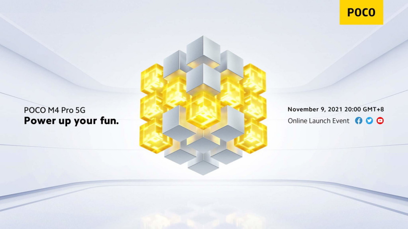 POCO 今日宣布了 M 系列的新机发布会时间 ——POCO M4 Pro 5G 将于北京时间 11 月 9 日 20 点发布。