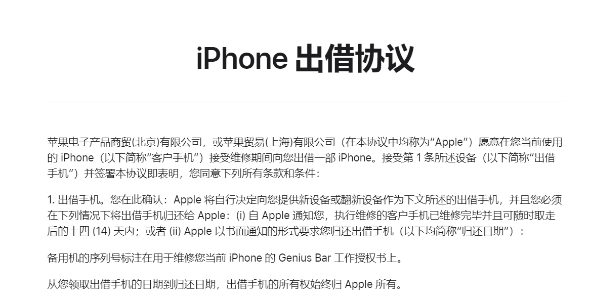 根据苹果的 iPhone 出借协议,用户可以在维修期间申请使用出借设备,但必须在收到维修设备可供取件通知后 14 天内归还出借设备。目前尚不清楚国行是否也更换为了 iPhone XR。