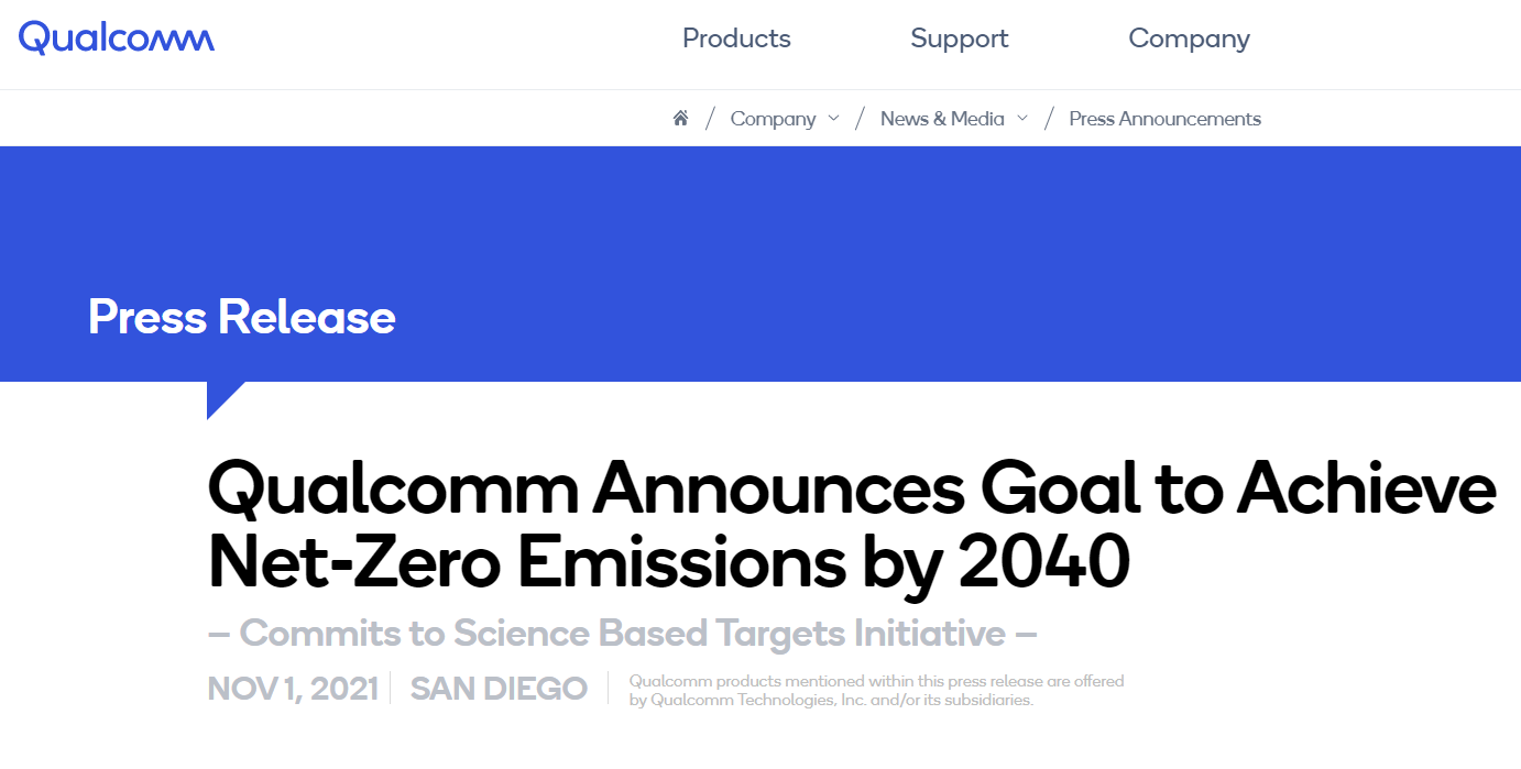 11 月 2 日消息,随着联合国 COP26 气候峰会的召开,高通已成为最新一家宣布可持续发展承诺的公司,将通过三步计划,到 2040 年实现净零排放。
