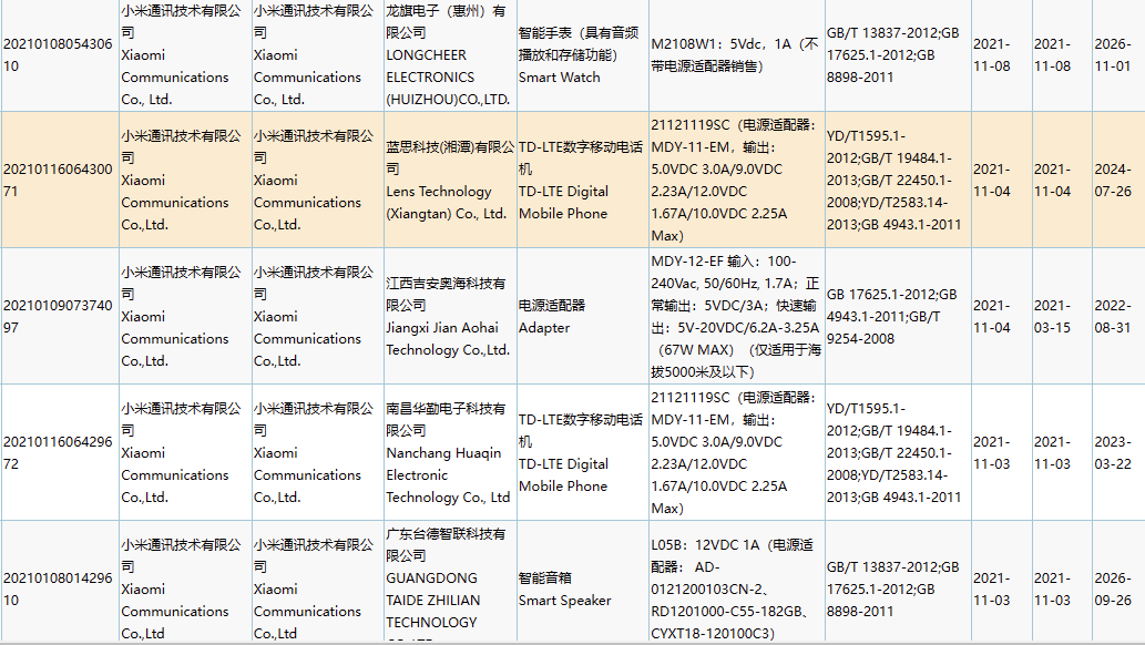 值得一提的是,虽然该机尚未出现在其他地方,但IT之家发现小米近日有多款新品通过了 3C 认证,例如这款型号为 21121119SC 的 4G 机型。