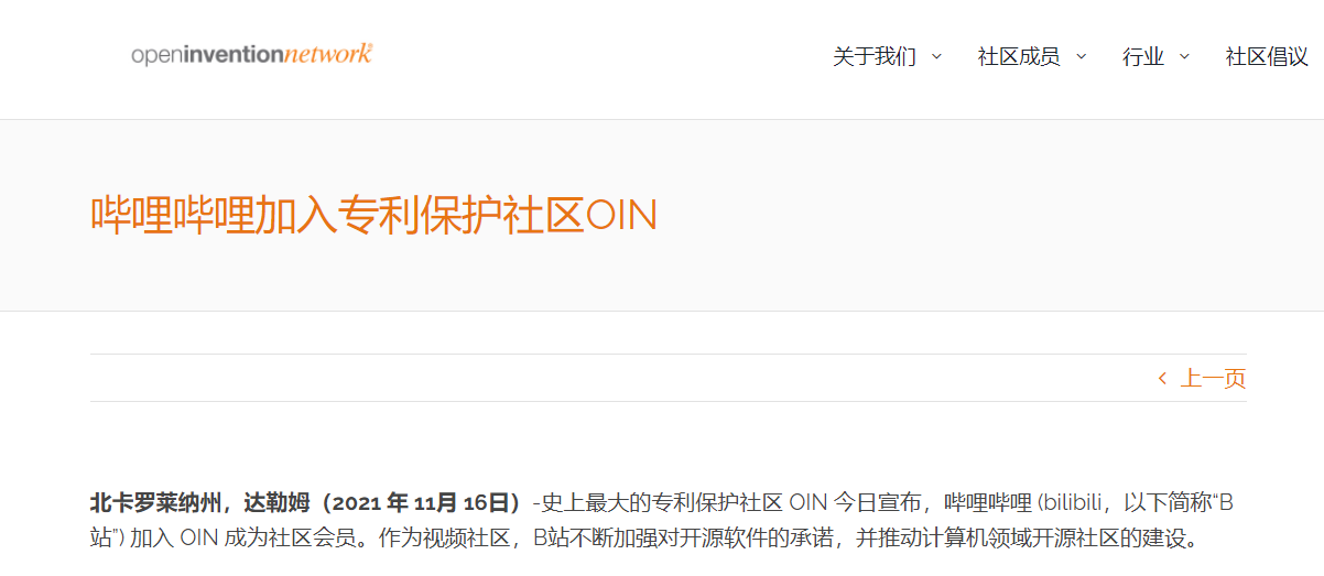 11 月 17 日消息,开源专利保护社区 OIN 今日宣布,哔哩哔哩 (bilibili,以下简称“B站”) 加入 OIN 成为社区会员。作为视频社区,B站不断加强对开源软件的承诺,并推动计算机领域开源社区的建设。