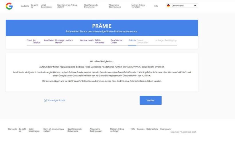 11 月 17 日消息,谷歌此前在欧洲市场为预购 Pixel 6 系列的用户赠送 Bose 700 耳机,据 9To5Google 报道,Bose 700 耳机已赠送完毕,谷歌开始赠送 Bose QC 45。