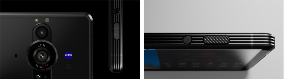 Xperia PRO-I 装配了一个实体快门按键,可操作自动对焦和快门释放。显示屏处于关闭状态时,用户也可以长按快门按键快速启动“摄影大师”App,并立即开始拍摄。Xperia PRO-I 还配备了一个挂绳孔,以更好地保护设备。