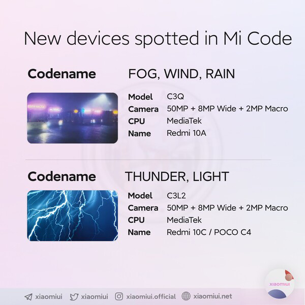 除了以上几款产品,根据 Xiaomui 消息,小米 Redmi 10A、Redmi 10C、POCO C4 也出现在在了 IMEI 数据库。