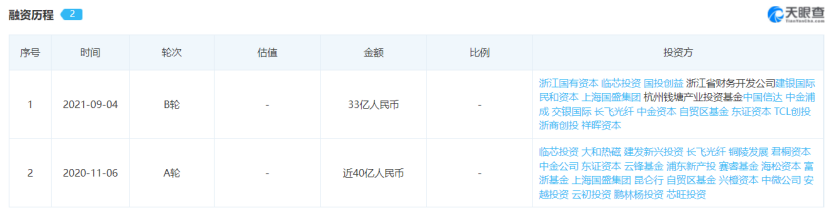 中欣晶圆经历了两轮融资,股东包括临芯投资、建发新兴投资、长飞光纤、铜陵发展、君桐资本、中金公司、东证资本、云锋基金、浦东新产投、赛睿基金、海松资本、富浙基金、上海国盛集团、兴橙资本、中微公司、TCL 创投等。