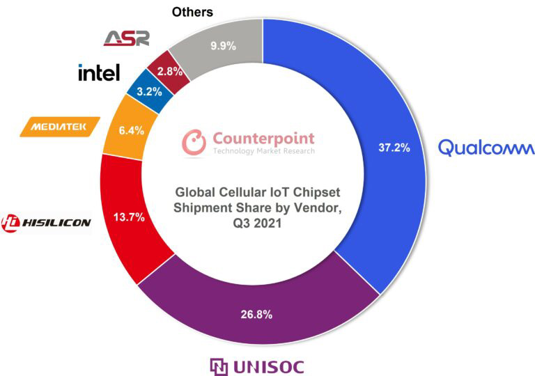 Counterpoint:第三季度全球蜂窝物联网模块出货量增长 70%,紫光芯片占比第二