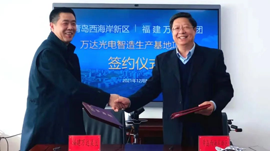 12 月 8 日,福建万达集团有限公司与青岛西海岸新区签署投资合作协议,福建万达光电智造生产基地项目正式落户西海岸新区。