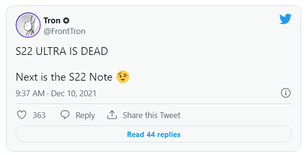 此前曝光的真机图显示,三星 Galaxy S22 Ultra 正面采用微曲屏幕,内置 S Pen 手写笔。手机后置摄像头模组与 S21 系列十分不同,取消了凸起的台阶设计。近日还有消息称,这款手机的名称不叫三星 Galaxy S22 Ultra,而有可能叫做 Galaxy S22 Note。这款手机预计将于 2022 年 1 月正式发布,具体消息还需要等待官方确认。