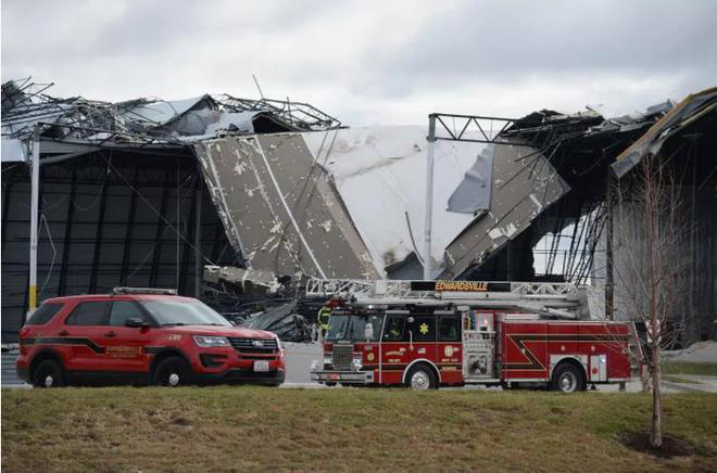 伊利诺伊州科林斯维尔紧急事务管理局发布在 Facebook 主页上的帖子称,坍塌是一起“大规模伤亡”事件。它后来发布了一张最新的事件善后照片,显示仓库的很大一部分被风暴完全摧毁。据当地媒体报道,亚马逊五年前在爱德华兹维尔开设了这个仓库,占地接近 14 万平方米。