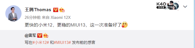 根据三大高管之前晒出的微博小尾巴,已经确定此次将拥有3款新机同时发布,分别是小米12X、小米12、小米12 Pro。