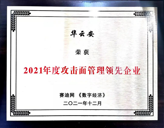 开年喜报丨华云安荣获“2021年度攻击面管理领先企业”