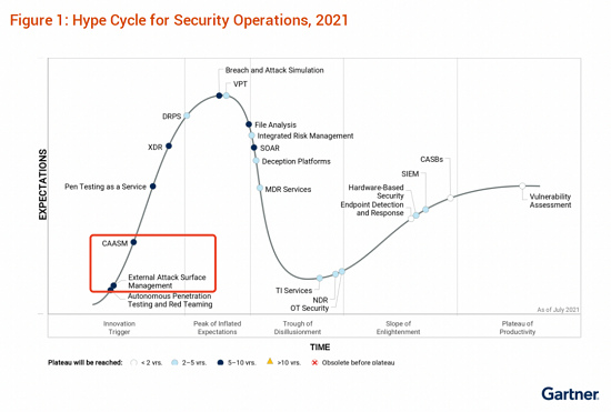 2021年,Gartner将攻击面管理相关技术定义为新兴技术