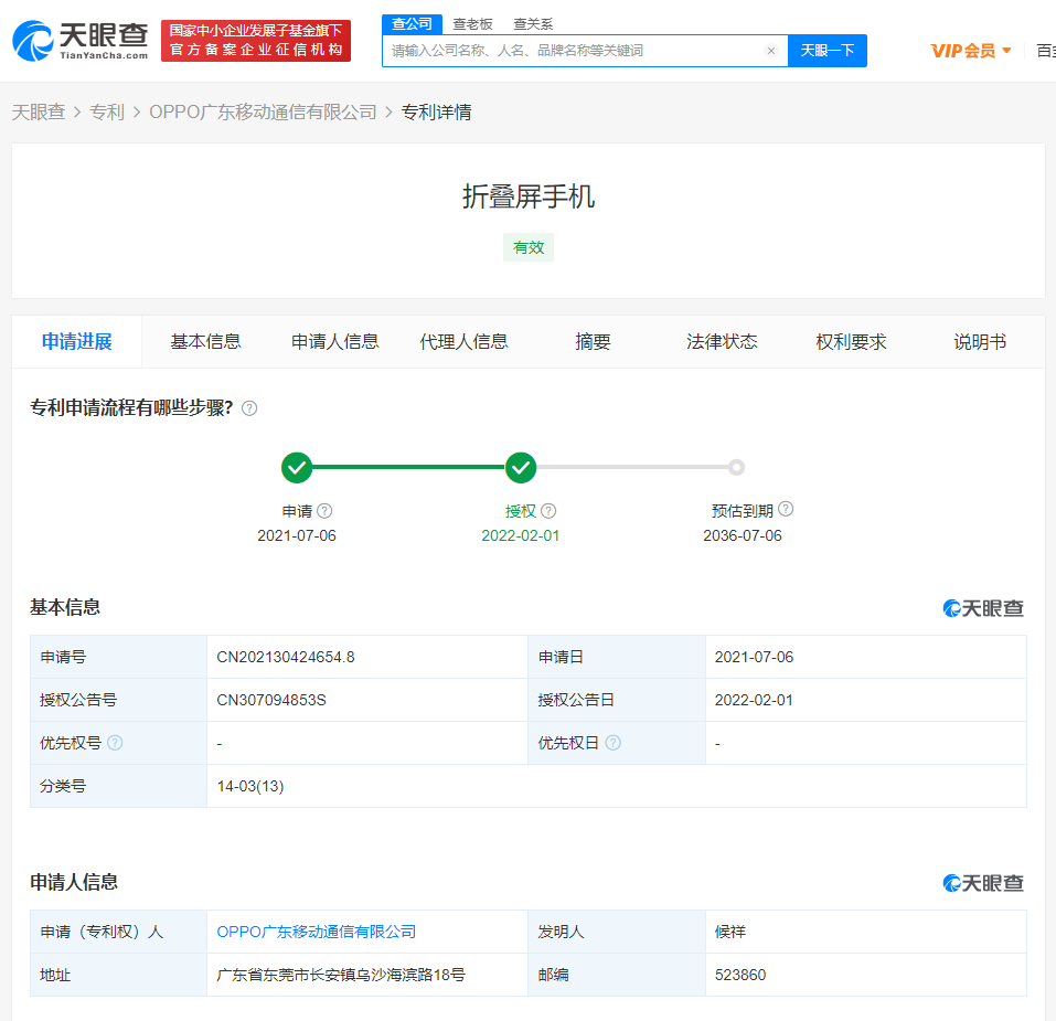 2 月 8 日消息,信息显示,近日,OPPO 广东移动通信有限公司获得“折叠屏手机”外观专利授权。
