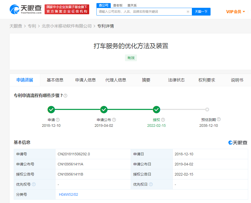信息显示,近日,北京小米移动软件有限公司获得“打车服务的优化方法及装置”专利授权。