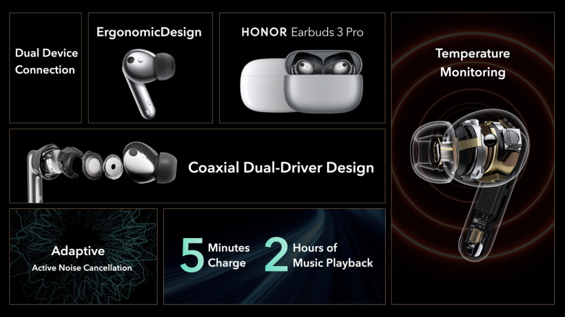 199 欧元,荣耀 Earbuds 3 Pro 真无线耳机正式发布:46dB 主动降噪,支持测温