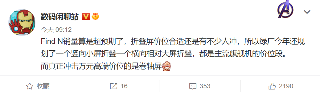 不仅如此,该博主还爆料,OPPO 正在研发卷轴屏手机,这是一款将冲击万元价位的高端机型。