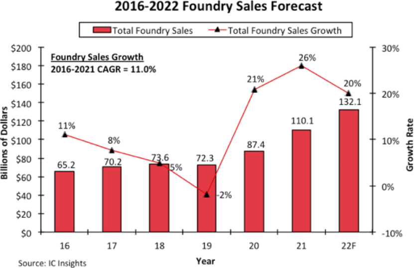 IC Insights:2021 年中国大陆晶圆代工厂占全球份额为 8.5%