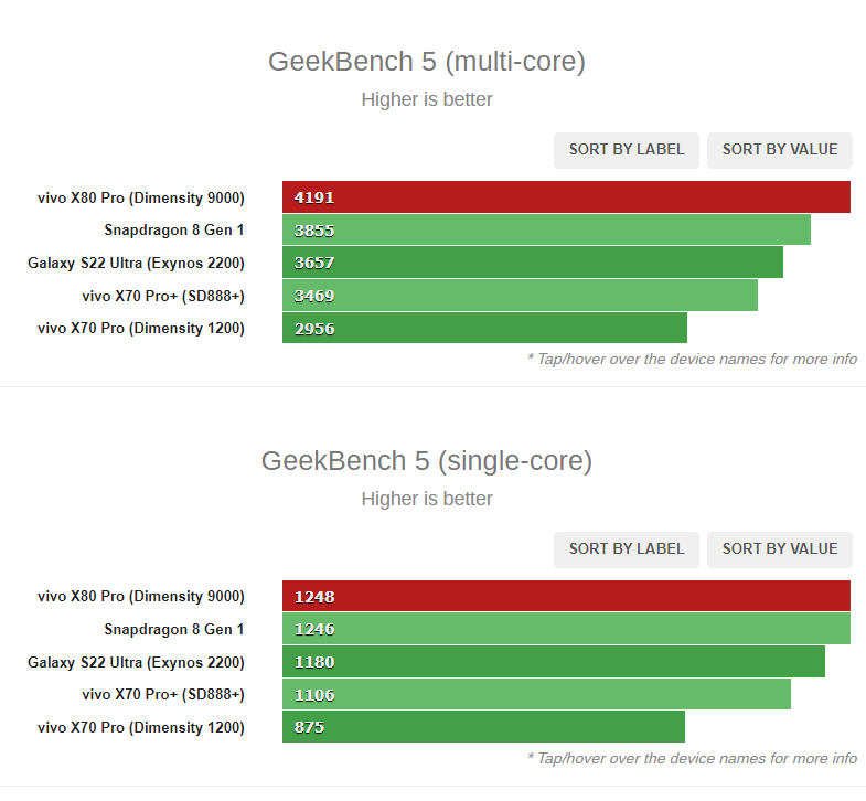 从 Geekbench 5 的跑分来看,其单核 / 多核均跑出了超越骁龙 8 Gen1 和 Exynos 2200 的成绩。据之前天玑 9000 工程机的国内多家媒体和数码大 V 评测报道来看,这个成绩符合预期,期待 vivo 终端上市的最终表现。