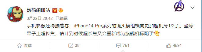 值得一提的是,此前 @数码闲聊站 也表示,苹果 iPhone 14 Pro 系列的后置镜头模组面积会更大,甚至横向占比已远超过机身 1/2 的宽度。