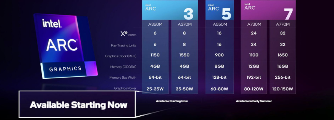 距离英特尔推出用于笔记本电脑的 Arc GPU 已经过去一周了,官方称入门级 Arc 3 系列现已“可用”,更强大的型号将在夏季推出。然而,在发布一周后,Arc A350 和 A370M 笔记本电脑还没有上市。