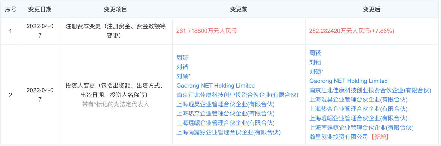 信息显示,4 月 7 日,尊湃通讯科技(南京)有限公司发生工商变更,新增小米关联公司瀚星创业投资有限公司为股东。