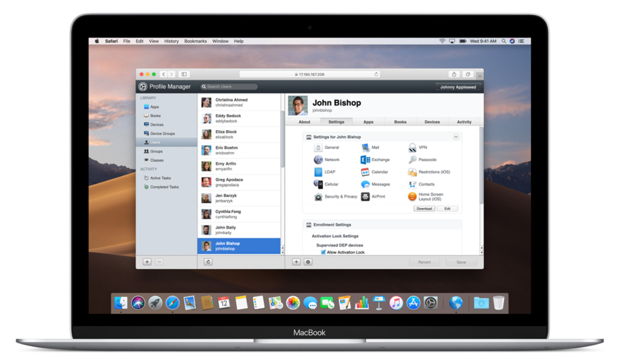 macOS Server 可让用户将通过批量购买计划 (VPP) 获得的各种 App 分配至每台设备,无需使用用户的 Apple ID。这样即可在 iOS 设备和 Mac 电脑上安装通过 VPP 获取的各种 App,不用再配置 Apple ID 或发送邀请。用户还可以将设备上已安装的 App 迁移至用户的 Apple ID 中,而无需删除该 App 或用户数据。