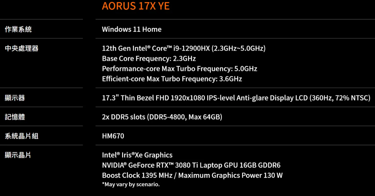 据 VideoCardz 消息,技嘉官网公布了 AORUS 17X 游戏本,确认搭载英特尔尚未发布的 i9-12900HX 处理器。目前,该页面也被删除。